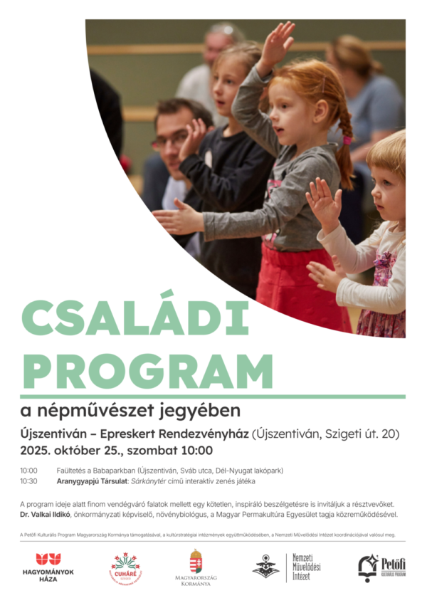 A Családi Nap programja a Magyar Kormány támogatásával, a Petőfi Kulturális Program keretében, a Nemzeti Művelődési Intézet koordinációjával, a Hagyományok Háza, a Cuháré Kulturális Közhasznú Egyesület, az Újszentiváni Civil Ház és a közreműködők együttműködésével valósul meg.